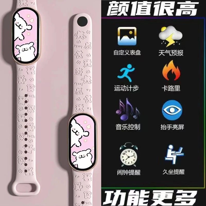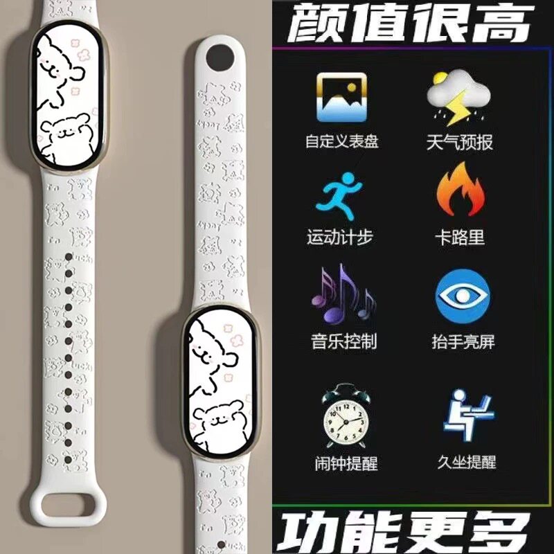 > 新款安卓通用多功能智能手环男女学生运动计步闹钟防水情侣手环表