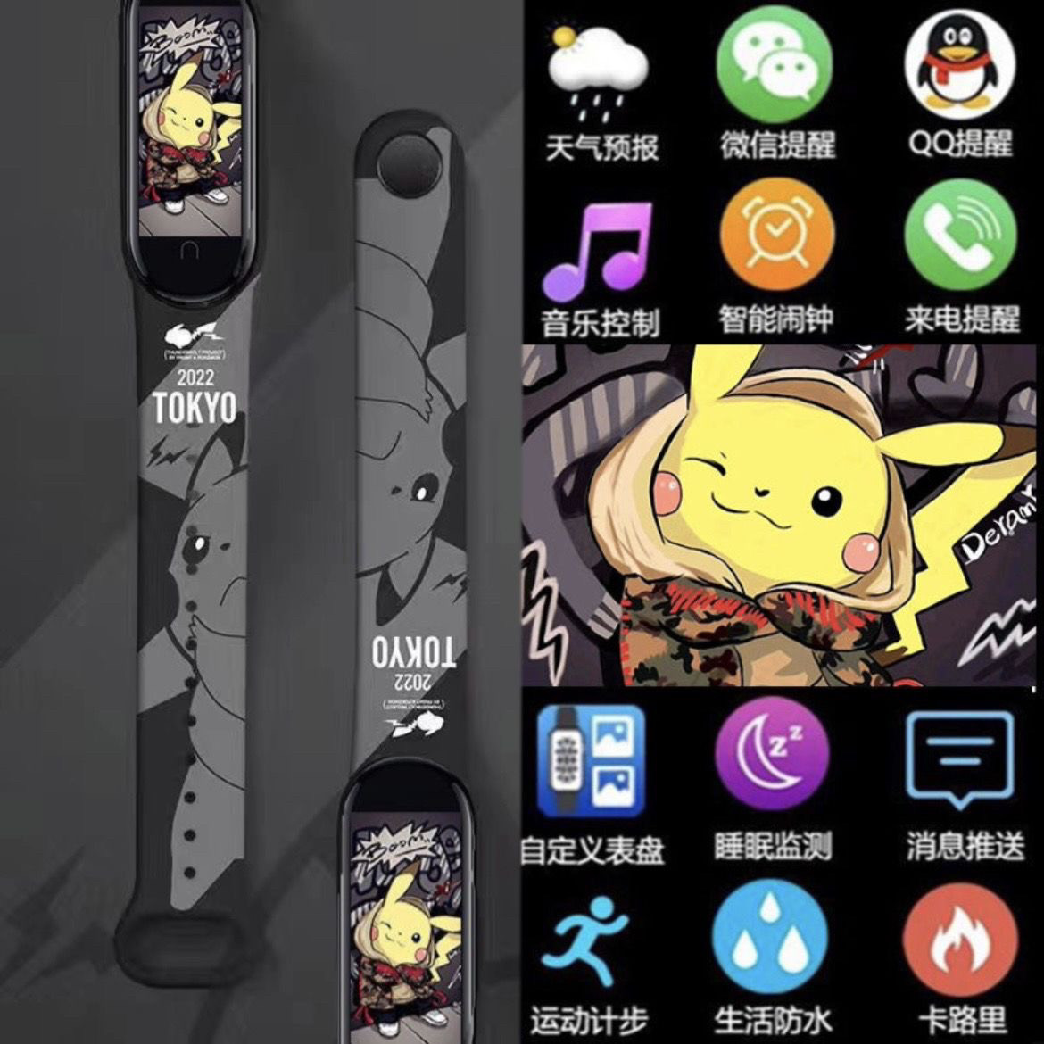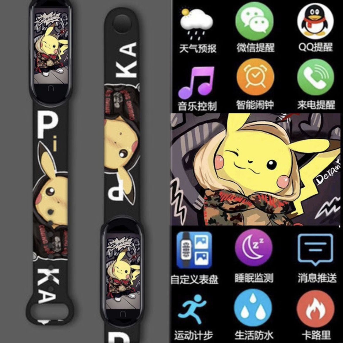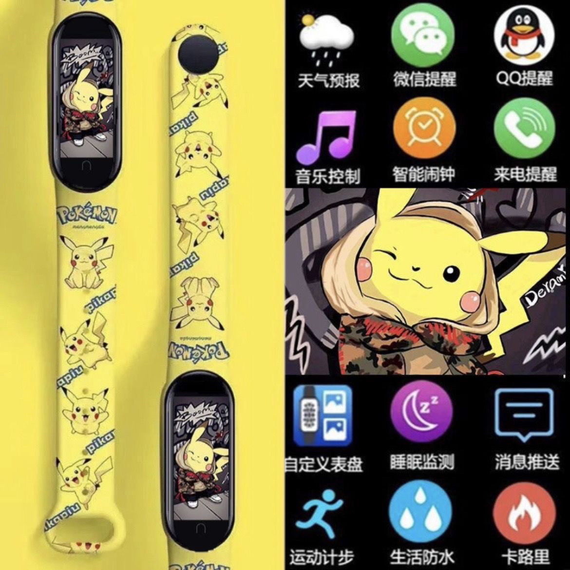 > 新款潮牌皮卡多功能智能充电学生运动计时手表触屏蓝牙遥控拍照款
