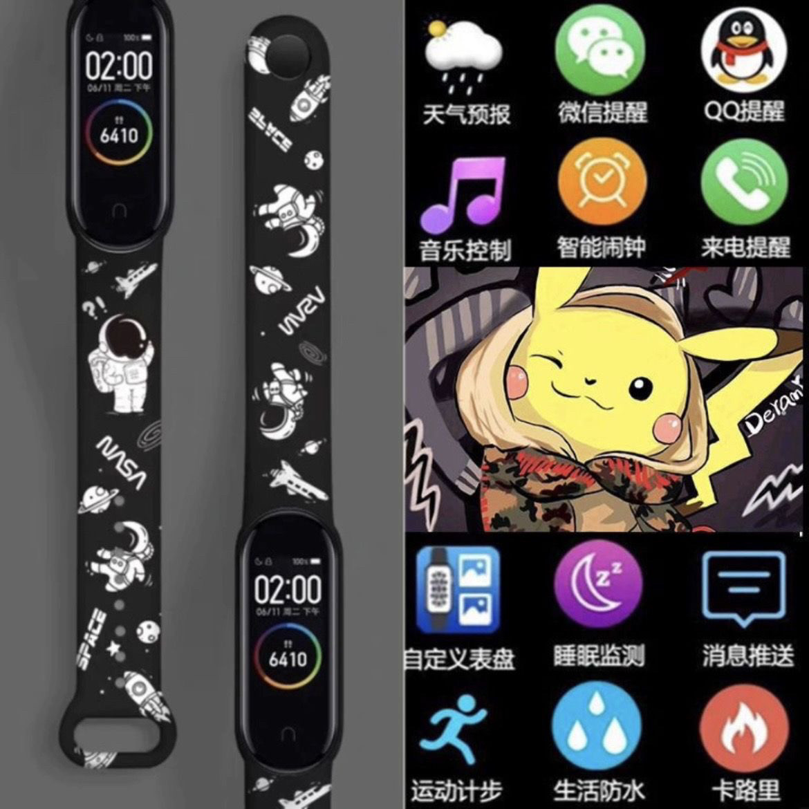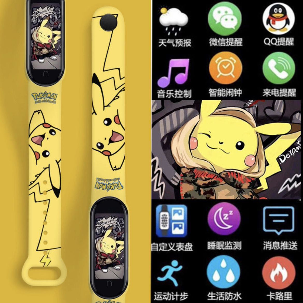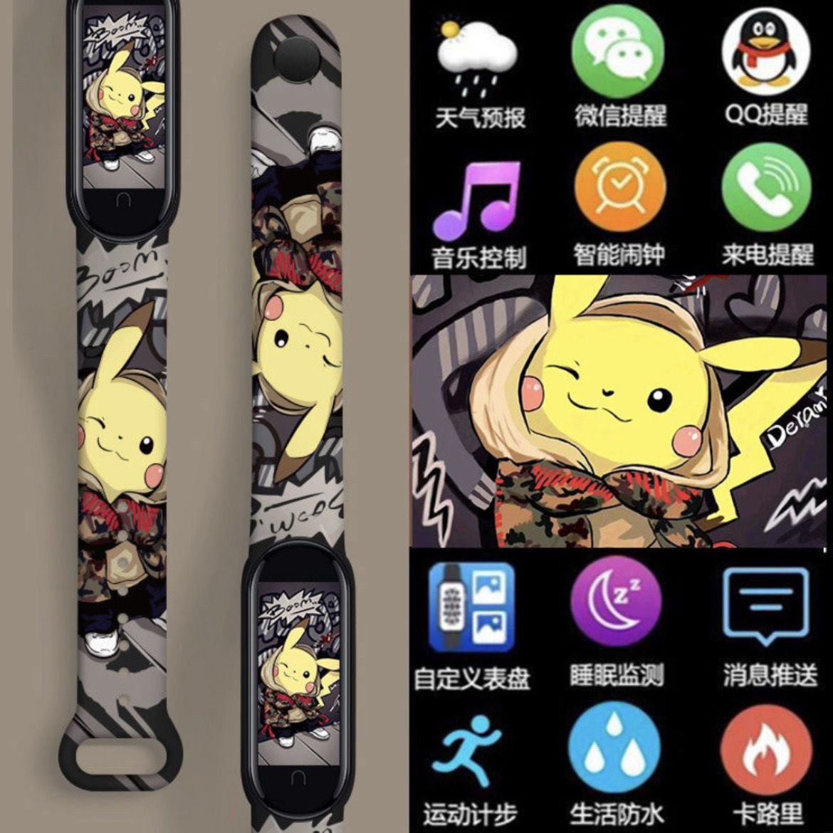 > 新款潮牌皮卡多功能智能充电学生运动计时手表触屏蓝牙遥控拍照款