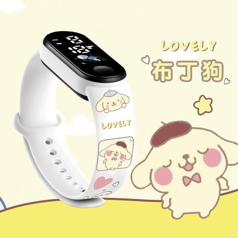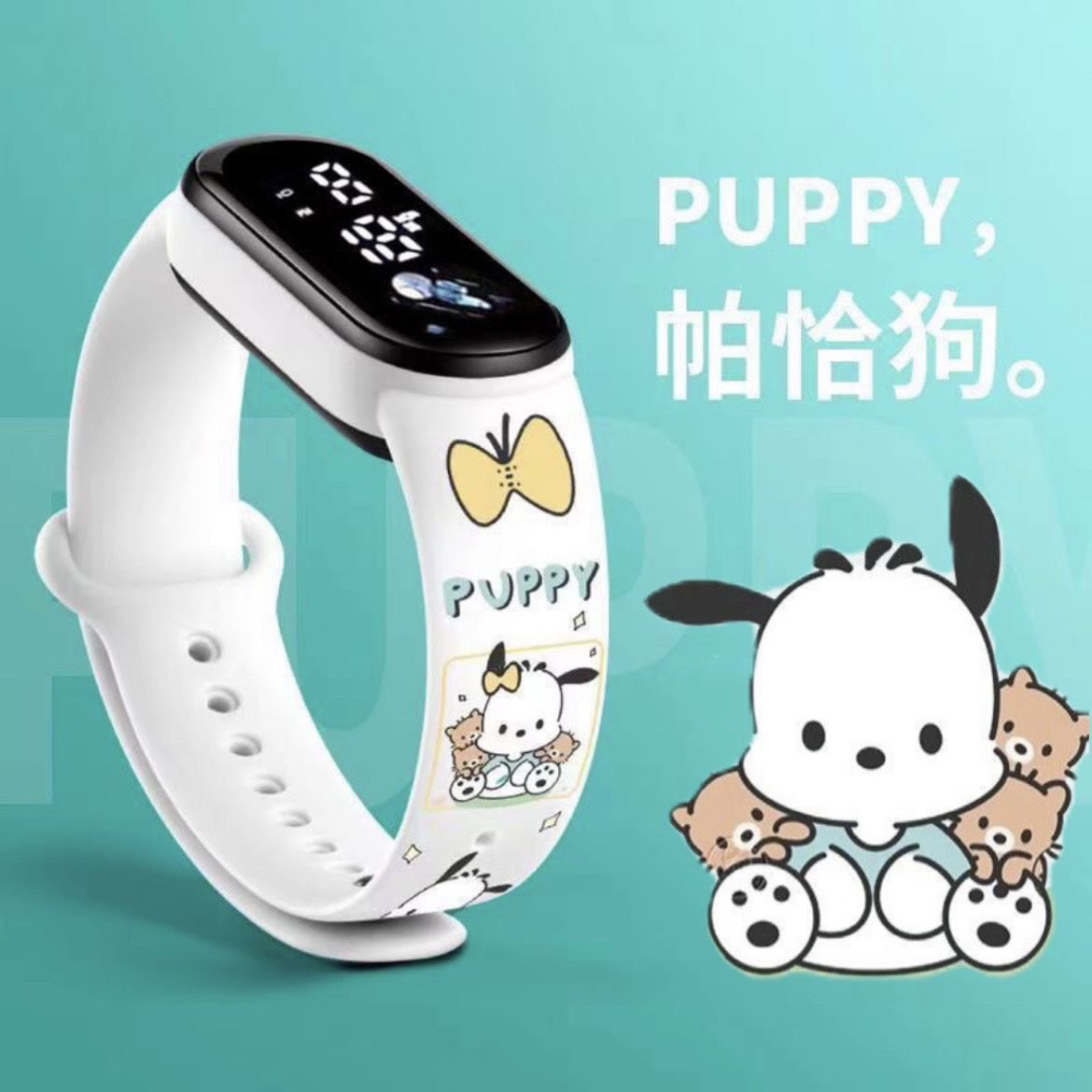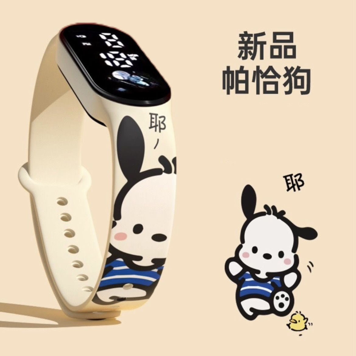 > 粉玉桂狗个性印花学生党轻奢可爱卡通印花运动防水夜光儿童手环表