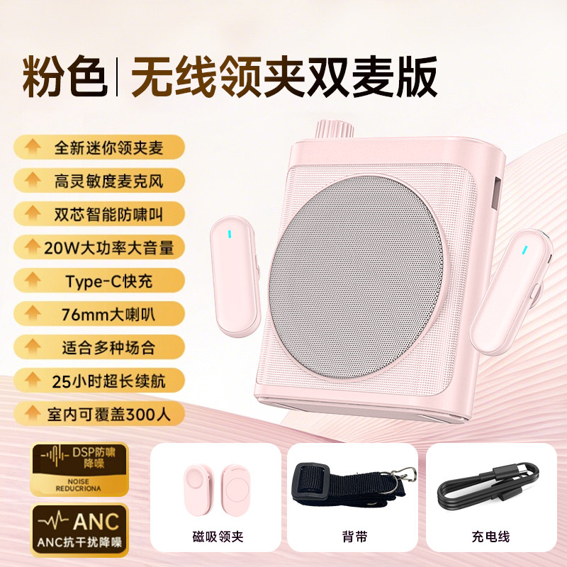 > 小蜜蜂扩音器教师上课专用无线领夹式麦克风大音量老师导游喊话讲