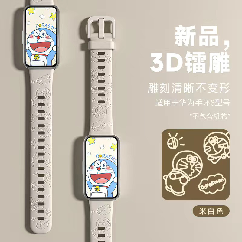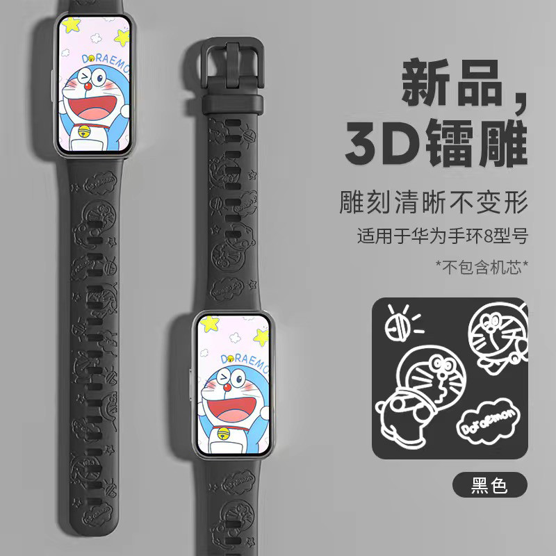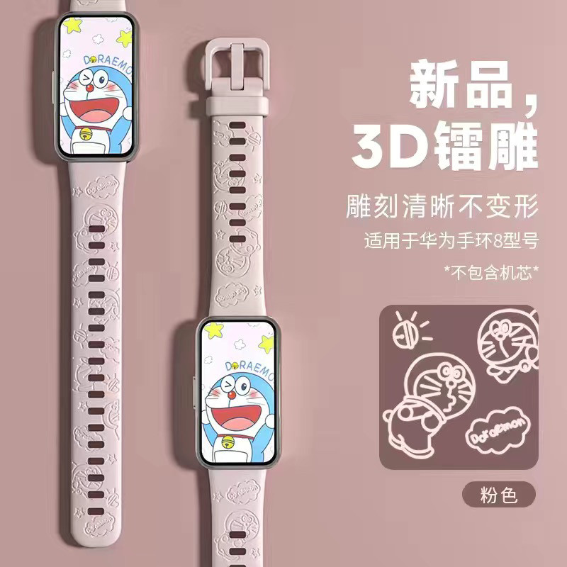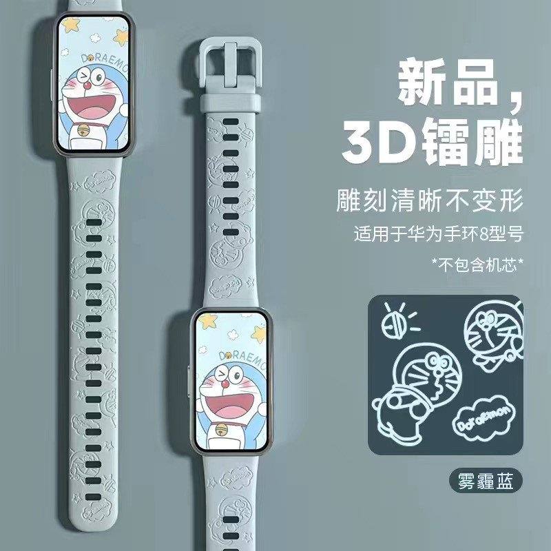 叮当猫适用于华为8手环表带9NFC防水硅胶通用替换带运动透气腕带