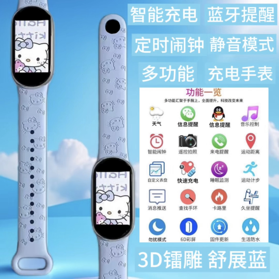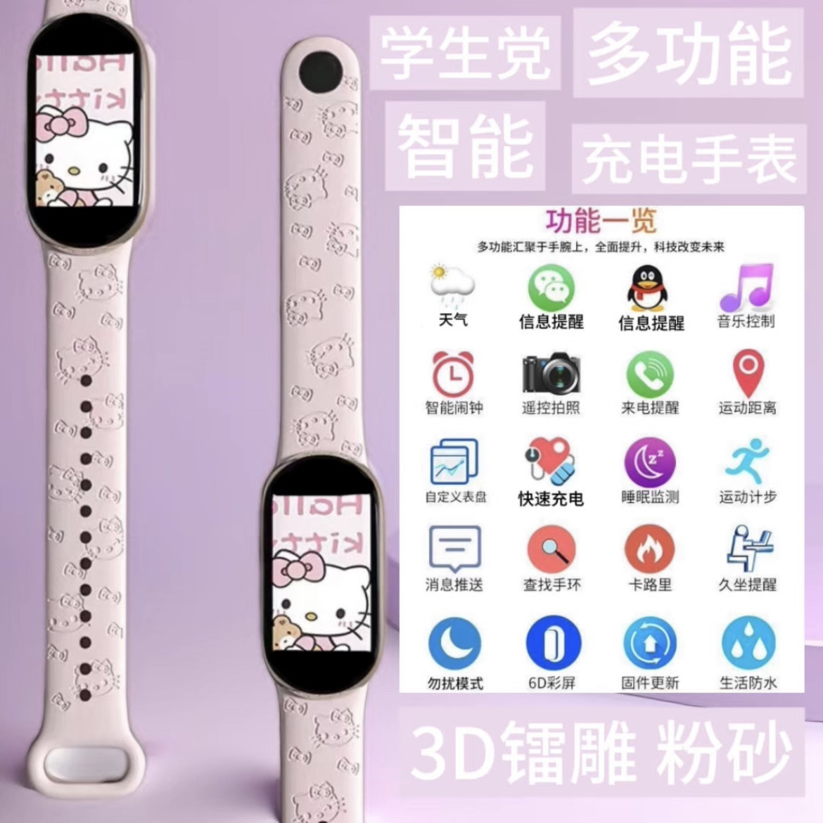 > 镭雕KT智能手环运动计步振动闹钟多功能表情侣适用安卓华为苹果机