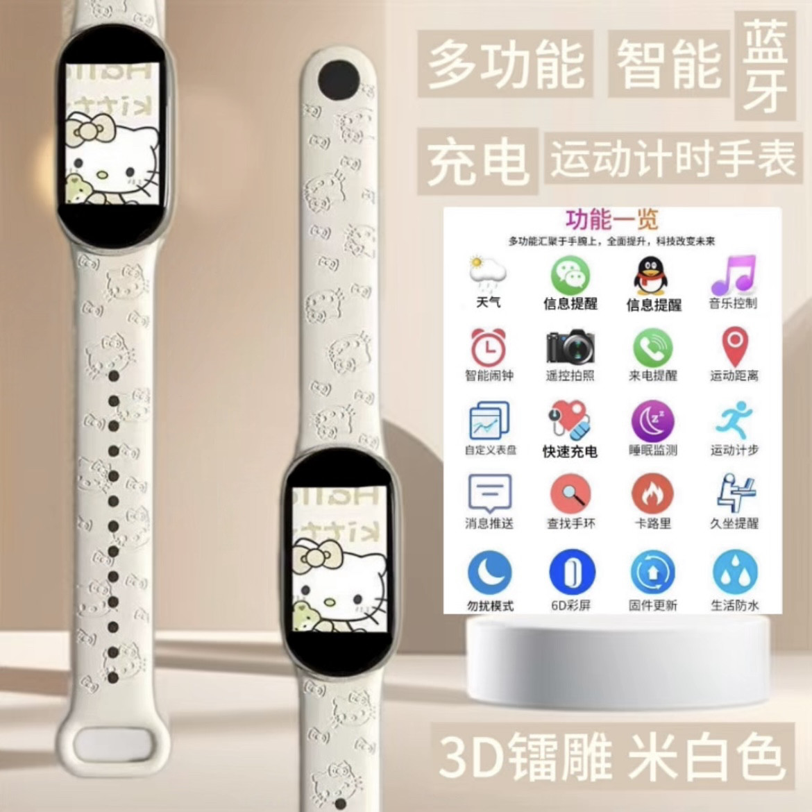 镭雕KT智能手环运动计步振动闹钟多功能表情侣适用安卓华为苹果机