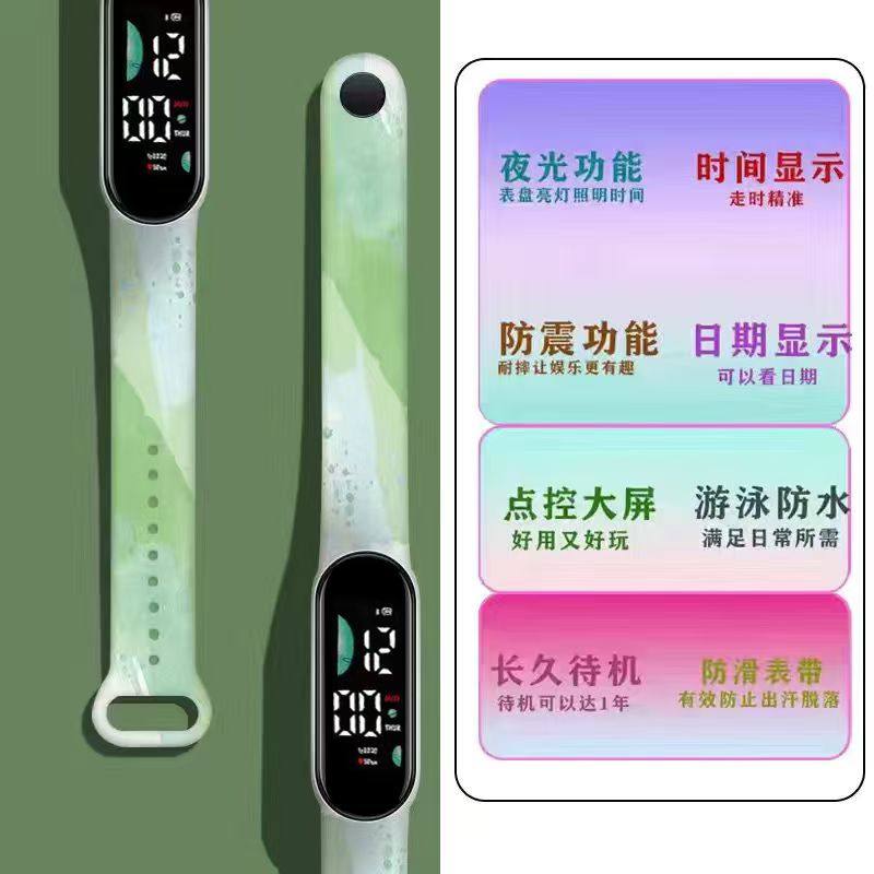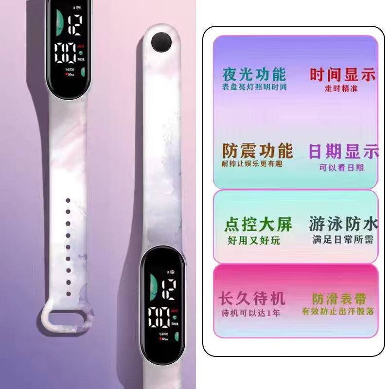 > 紫韵色多功能智能手环可充电儿童初高中学生手表防水测心率闹钟