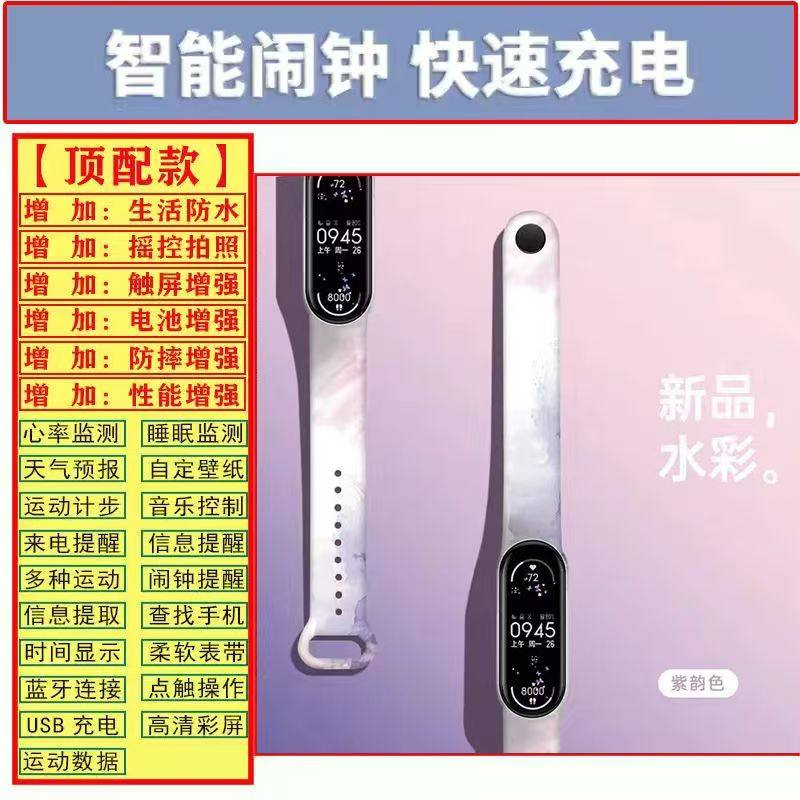 紫韵色多功能智能手环可充电儿童初高中学生手表防水测心率闹钟
